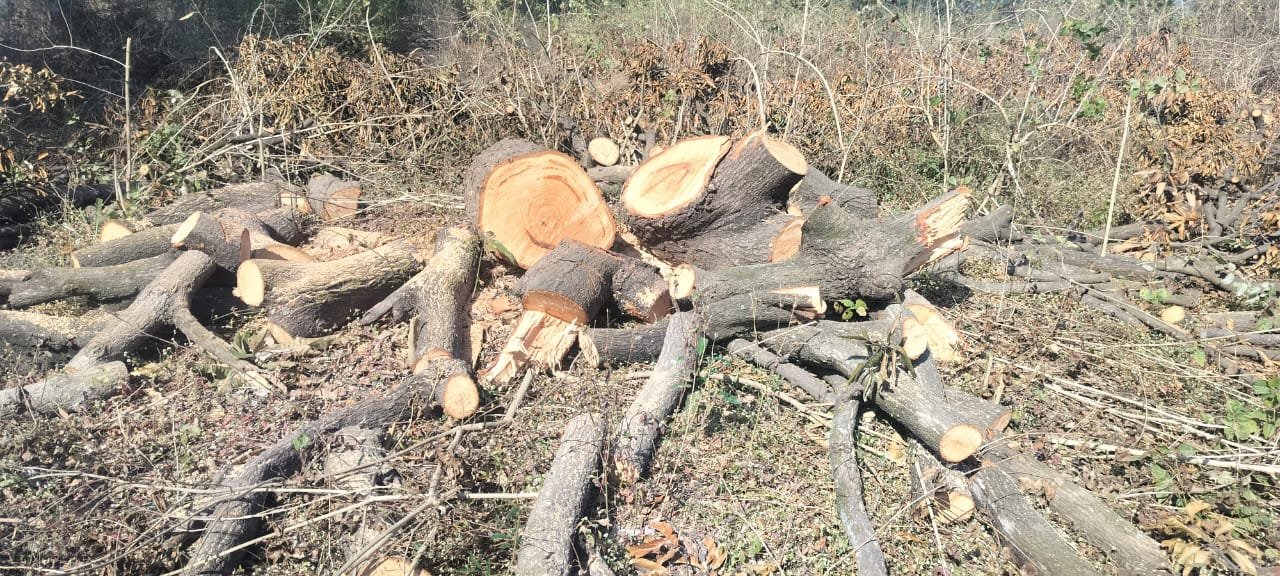 फलदार वृक्षों को काटकर बनाई जा रही है अवैध कॉलोनी