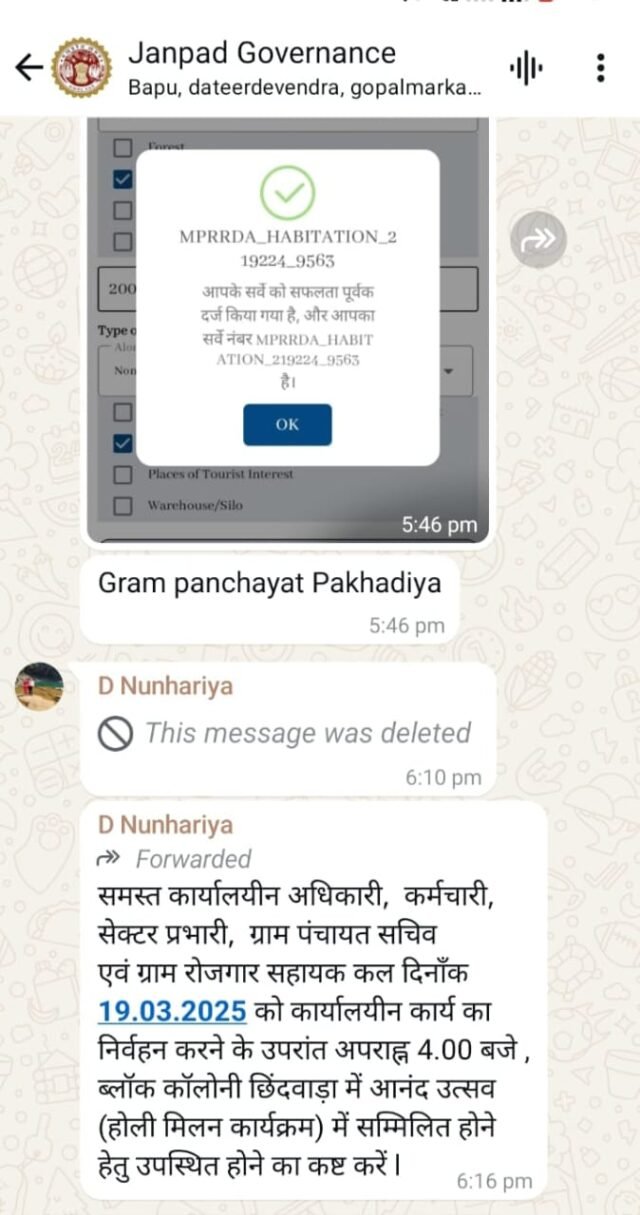 छिंदवाड़ा – (लगी क्या)। जनपद पंचायत छिंदवाड़ा की कार्यप्रणाली हमेशा चर्चाओं में बनी रहती है। हाल ही में ऐसा ही एक मामला प्रकाश में आया है। जिसमें जनपद पंचायत के मुखिया के इशारे पर विवादित छोटे साहब ने रंग पंचमी मनाने के लिए सरपंच और सचिव से जमकर उगाही कर ली। इतना ही नहीं कार्यालय के पास की एक होटल के संचालक को भी खाना एवं नाश्ते की जिम्मेदारी देते हुए उन्हें ठेका भी दे दिया गया। इस मामले में विभाग से जुड़े जानकारो की माने किसी न किसी कार्यक्रम को लेकर इसी तरह से चंदे के नाम पर उगाही की जाती है। रंग पंचमी को लेकर भी कुछ ऐसा ही जनपद पंचायत के कार्यालय में उगाही का सिलसिला मंगलवार को दिनभर चलता रहा। छोटे साहब के द्वारा की जा रही वसूली को लेकर दिनभर कार्यालय में चर्चाओं का बाजार भी गर्म रहा।